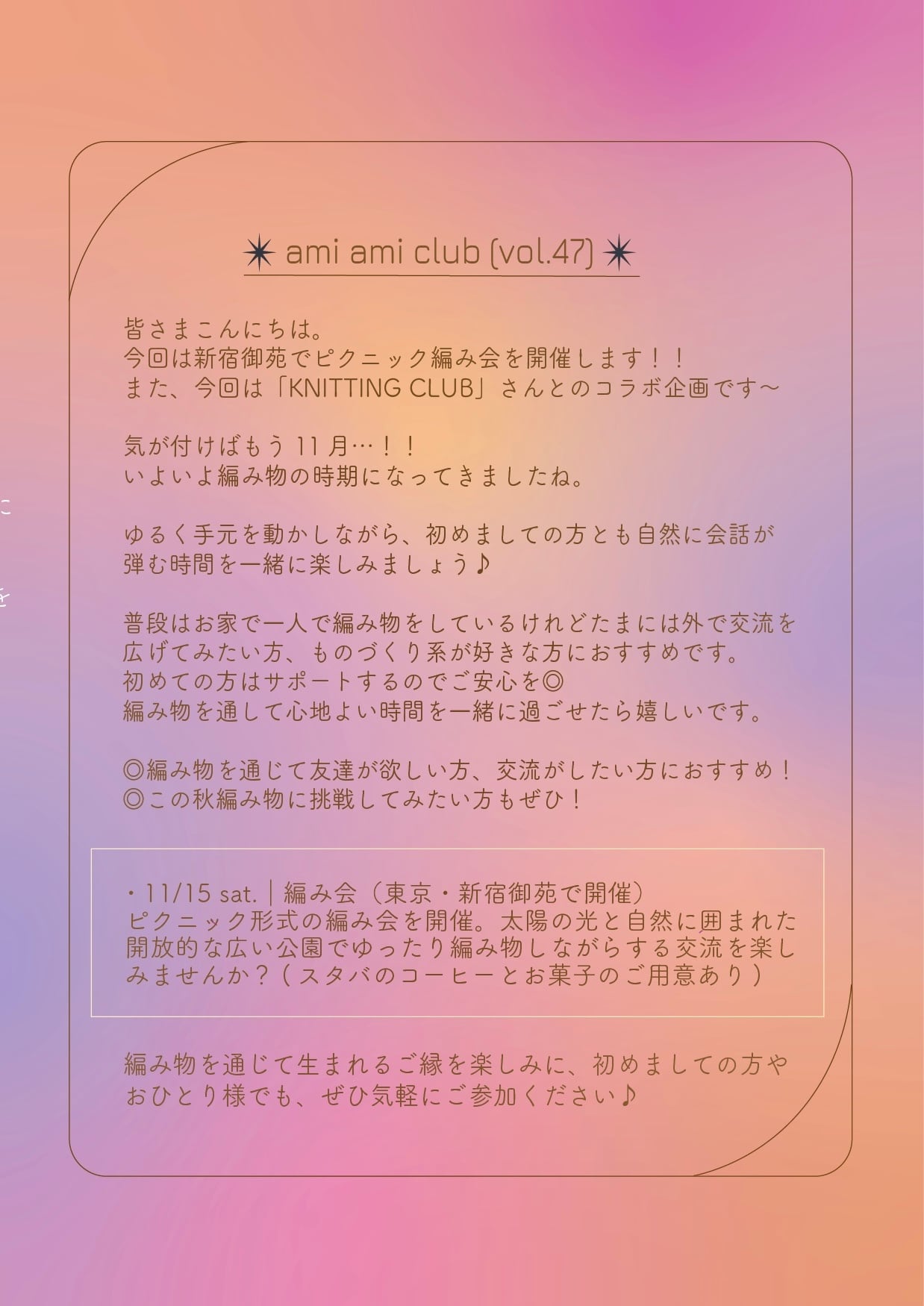 静かに集中したり、笑い合ったり、それぞれが心地よく過ごせるような編み会にできたら嬉しいです。