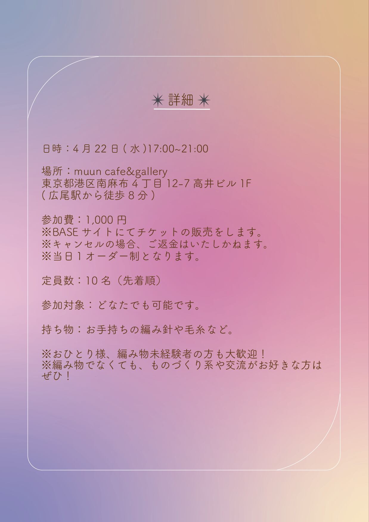 ✴︎4/22(水夜)編み会チケット✴︎